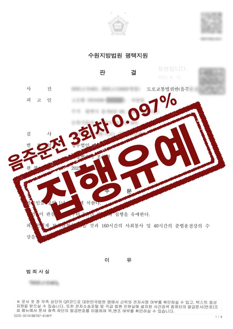 음주운전 3회차 집행유예 성공사례