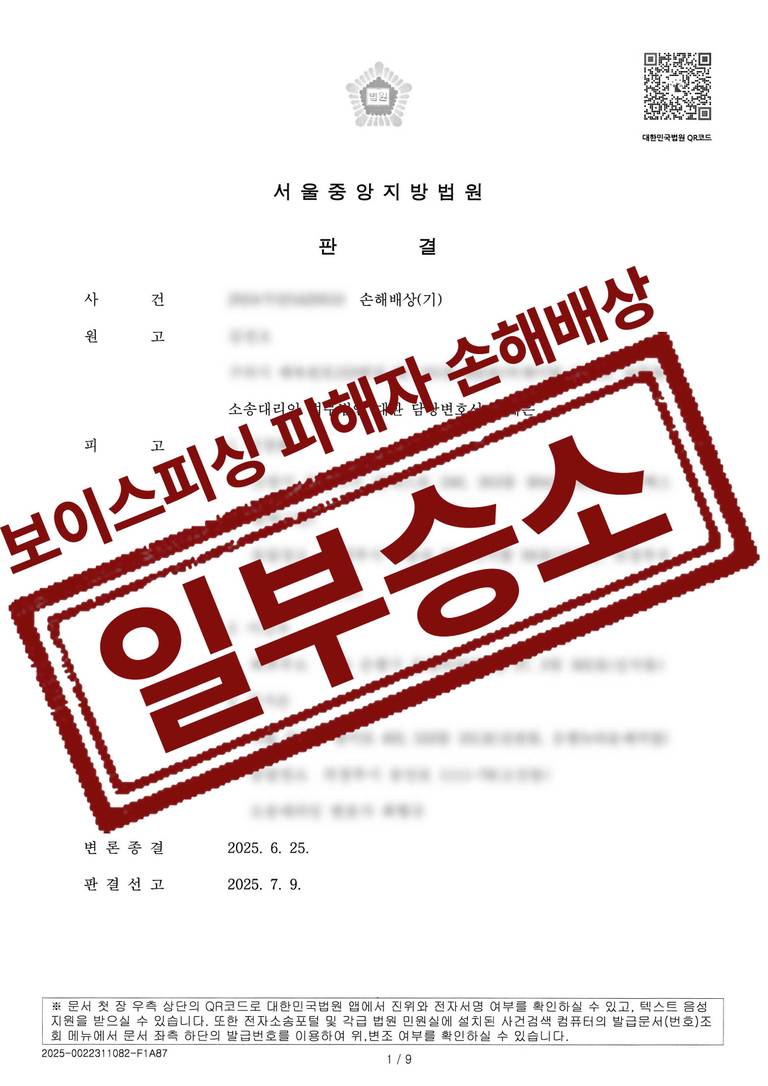 보이스피싱은 수사기관이 적극적으로 추적해도 조직의 실체가 해외에 있는 경우가 많고, 핵심 가해자에 대한 형사처벌 외에는 실질적인 피해 회복이 어려운 경우가 대부분입니다. 하지만 현금인출책, 전달책, 계좌양도자 등 범죄의 ‘실행 단계’에 참여한 이들을 상대로는 민사상 손해배상청구가 가능하며, 실제 일부 피해금 회수가 이뤄진 사례도 점차 늘고 있습니다.