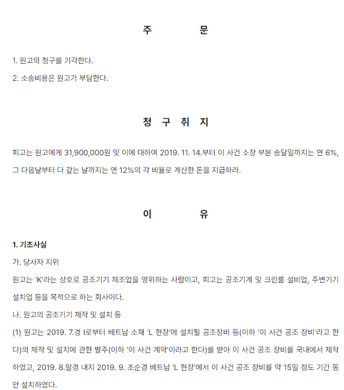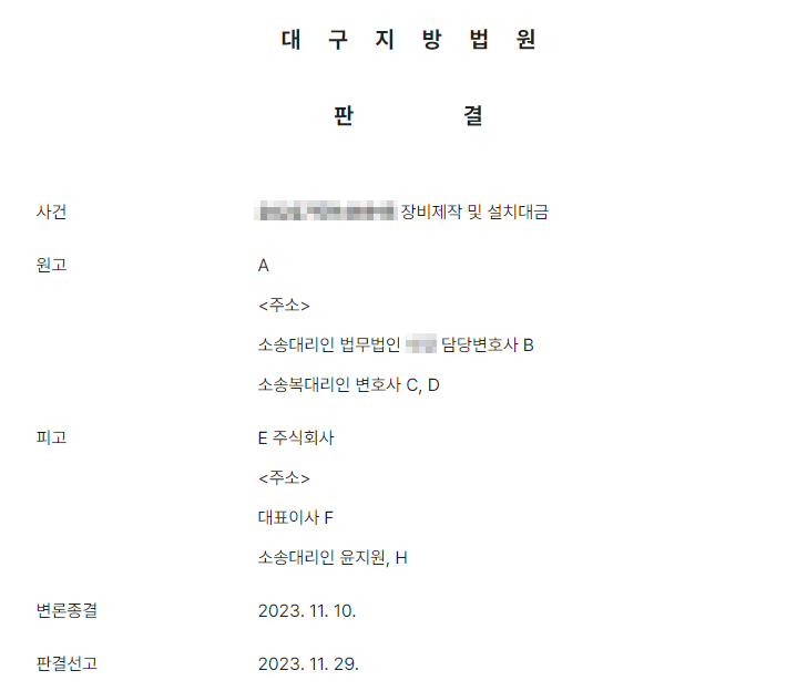피고는 피고의 대표이사의 형이 운영하던 회사(이하 '소외 회사'라고 함)가 부담하는 대금지급 채무에 대하여 원고, 피고, 소외 회사 모두의 양해하에 자신의 법인 명의로 원고에게 세금계산서를 발행하였습니다. 원고는 피고가 채무자가 아니라는 사실을 잘 알고 있었지만, 세금계산서를 빌미로 피고에 대하여 장비제작 및 설치대금 지급청구소송을 제기하였습니다.