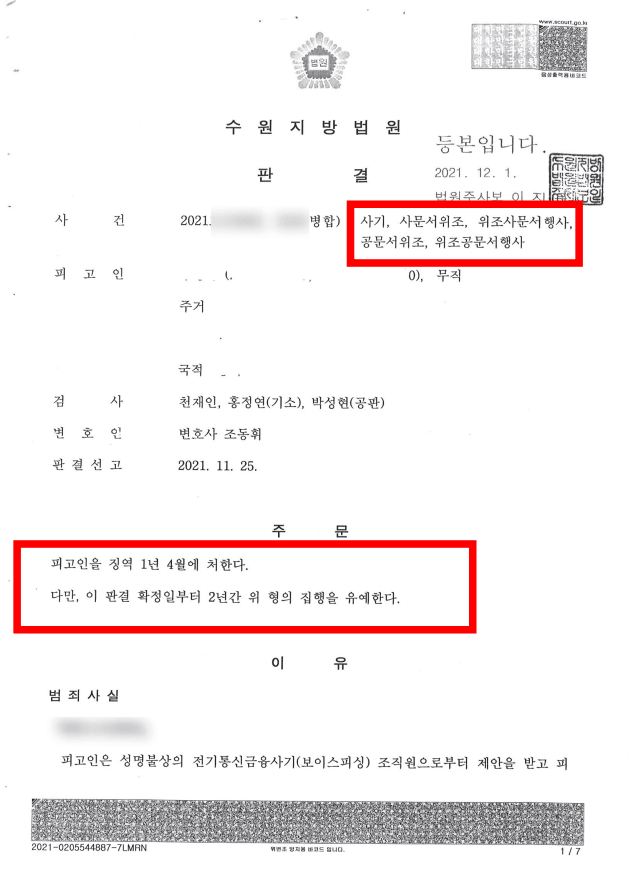 이 사건은 편취 횟수가 4회이고 피해금액이 5,600만 원에 달하는 중대한 보이스피싱 범죄였습니다. 더욱이 사문서 위조죄까지 경합된 상황이어서 법정형이 매우 무거운 사안이었습니다. 피해자 전원과의 전액 합의는 이루어지지 않았고 일부 피해자와만 부분 합의가 성사된 상태였습니다. 보이스피싱 범죄에 대한 사회적 경각심이 높아진 상황에서 법원의 양형 기준도 점점 엄격해지고 있어, 실무상 전원 합의가 되어도 엄벌에 처해지는 경우가 빈번한 범죄 유형이었습니다. 이러한 여건 하에서 집행유예를 받기 위해서는 특별한 변론 전략이 필요한 상황이었습니다.