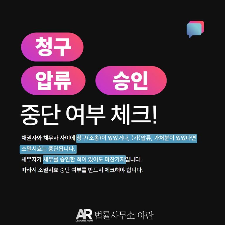 청구, 압류, 승인 등으로 소멸시효가 중단되었다