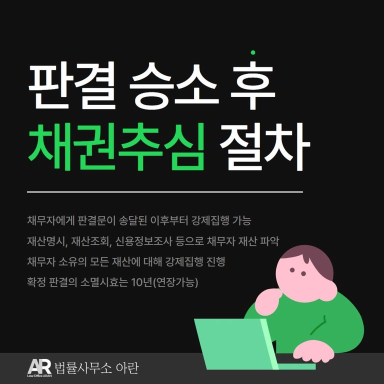 이번 포스트에서는 승소 판결 선고 후, 법원의 힘을 빌어 채권을 추심하는 방법에 대해서 살펴보겠습니다.