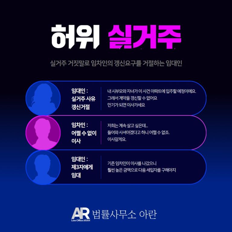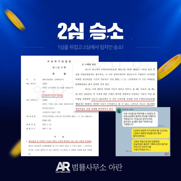 오늘은 법률사무소 아란에서 실제 수행하였던 사례로서 임차인이 허위 실거주에 대한 손해배상청구 소송을 제기하였다가 1심에서 패소한 후 항소하여 2심에서 승소한 사례에 대해서 소개드리겠습니다.