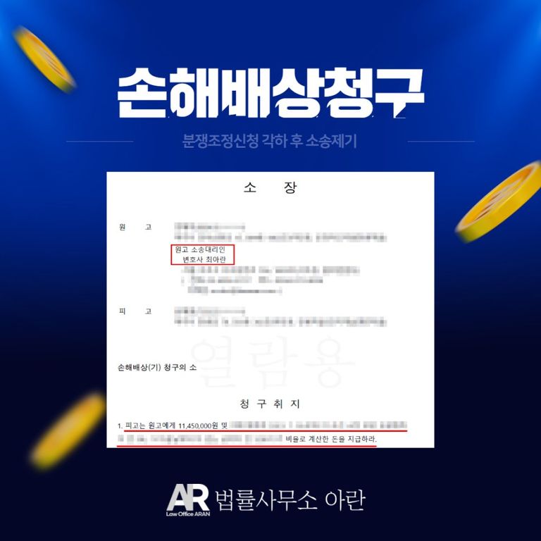 이에 의뢰인은 법률사무소 아란을 찾아 손해배상청구 소송을 맡겨 주셨습니다.