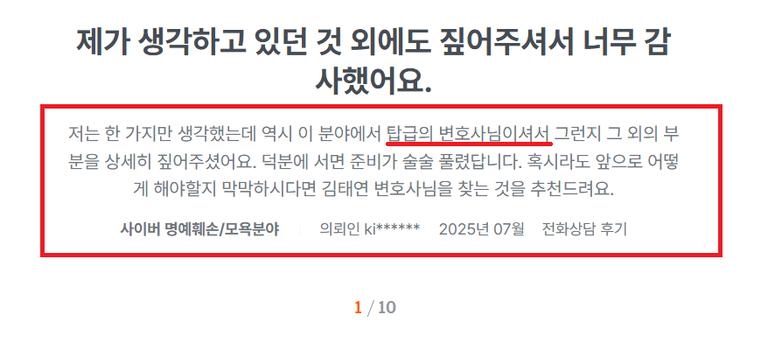 [김태연 대표 변호사님 상담 후기 출처:로톡]