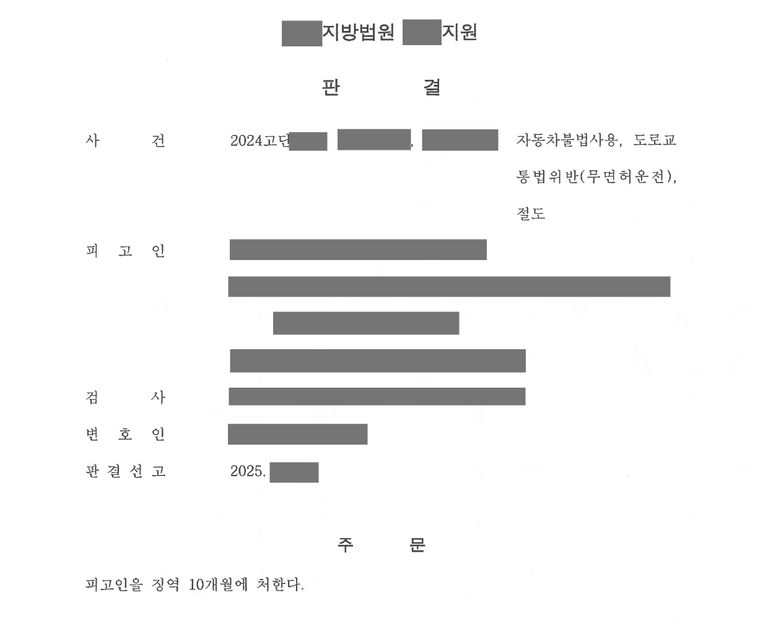 법원은 피고인에게 징역 10개월의 실형을 선고했습니다.