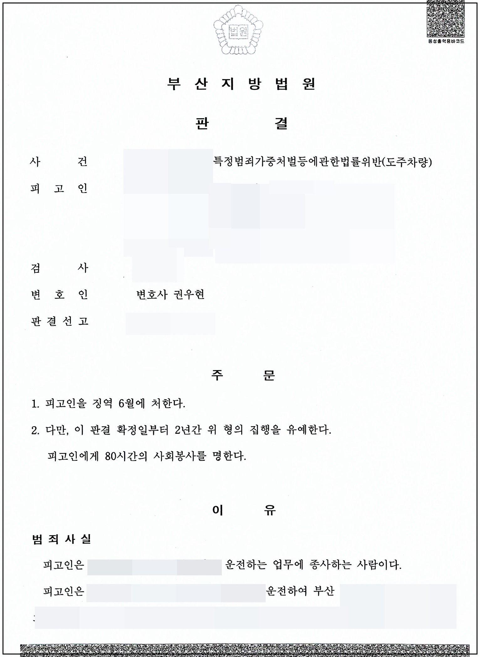 그러나 애초 목격자가 가해자라는 점을 짐작하고 있었던 피해자 측은 가장의 연기를 하여왔던 가해자에 대한 분한 마음에 섣불리 합의하려 하지 않아 합의에 도달하는데 굉장히 어려움을 겪었는데, 변호인으로서 피고인과 같이 피해자의 부친을 찾아가 사과하고 용서를 구하면 조금이라도 도움이 되겠다는 생각에, 직접 합의에 개입하여 좋은 결론을 이끌었던 사례입니다.