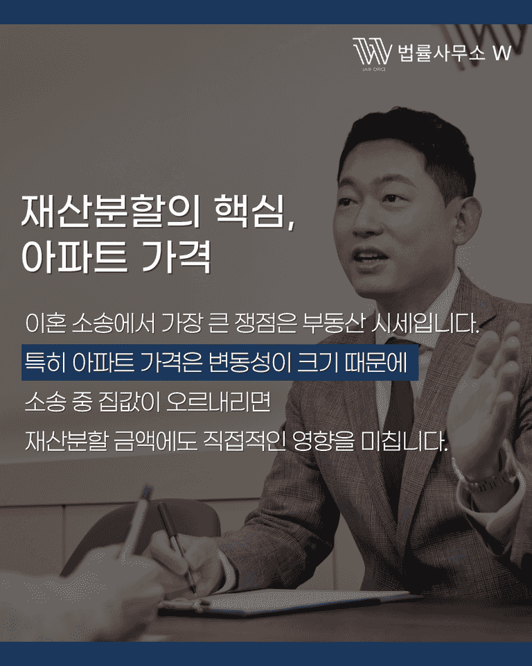 안녕하세요, 부산 법률사무소 W 진동환 변호사입니다. 상담을 하다 보면 의뢰인들이 가장 많이 물어보시는 질문 중 하나가 바로 “소송이 진행되는 동안 아파트 가격이 오르면, 재산분할도 그에 맞춰 늘어나나요?” 입니다.