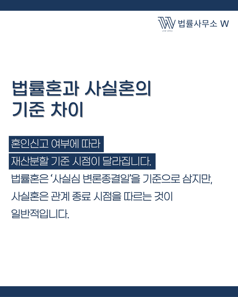 많은 분들이 이 부분을 혼동하시는데, 결론부터 말씀드리면 법률혼과 사실혼에 따라 기준이 달라집니다.