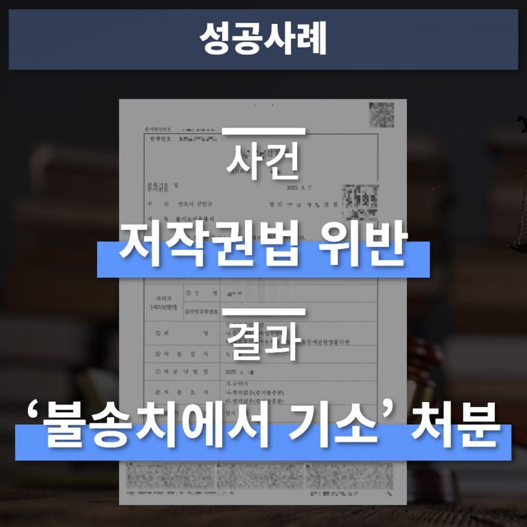 혐의 : 저작권법 위반 → 결과 : ‘불송치에서 기소’ 처분 이끌어낸 사례