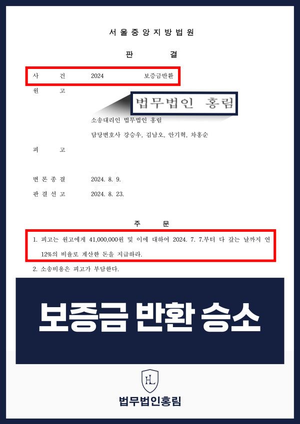 법원은 본 법무법인의 요청에 따라 '피고는 원고에게 보증금 전액을 지급하라.'는 판결을 내렸습니다