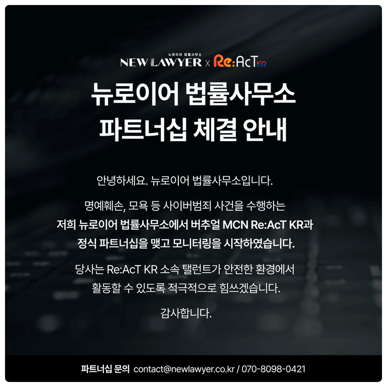 모 팬덤 고발대리를 포함하며 인플루언서, 스트리머와 파트너십을 통해 고소를 전담해 드리고 있는데요.
