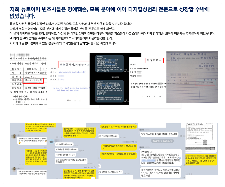 저희는 명예훼손, 모욕죄 사건을 중심으로 대량고소를 적극 도와드리며
