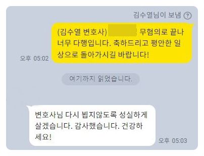 저희를 찾아주신 의뢰인분들의 감사 카톡 후기입니다.