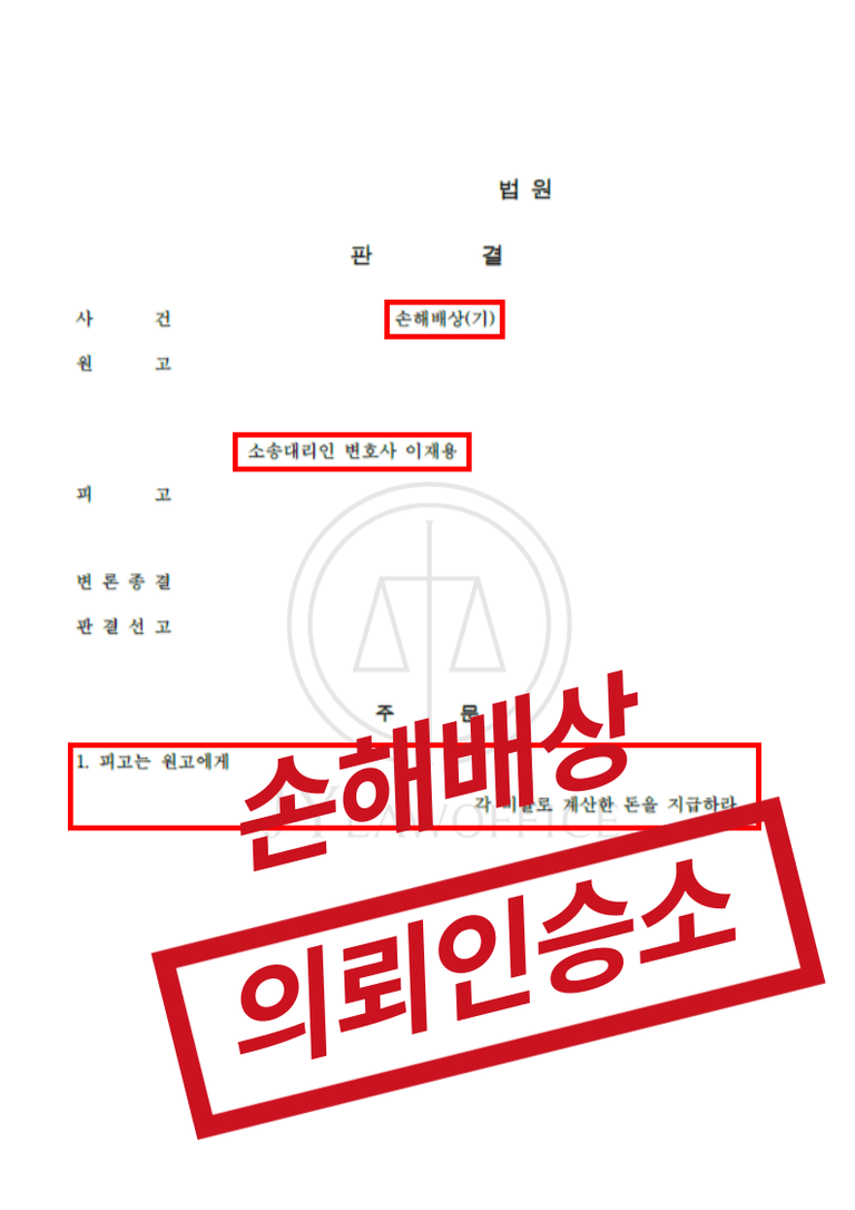 [성공사례] 불법행위 손해배상 청구 사례 - 상대방 손해배상금 지급 판결