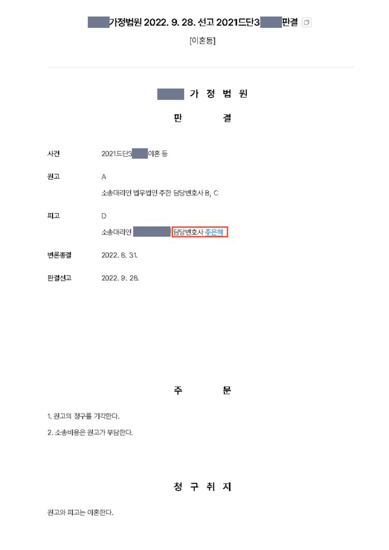 결과적으로 재판부는 원고의 이혼 청구를 모두 기각하고,