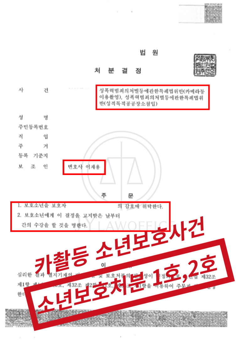 [성공사례] 성적목적공공장소침입, 카메라등이용촬영 - 소년보호처분 1,2호
