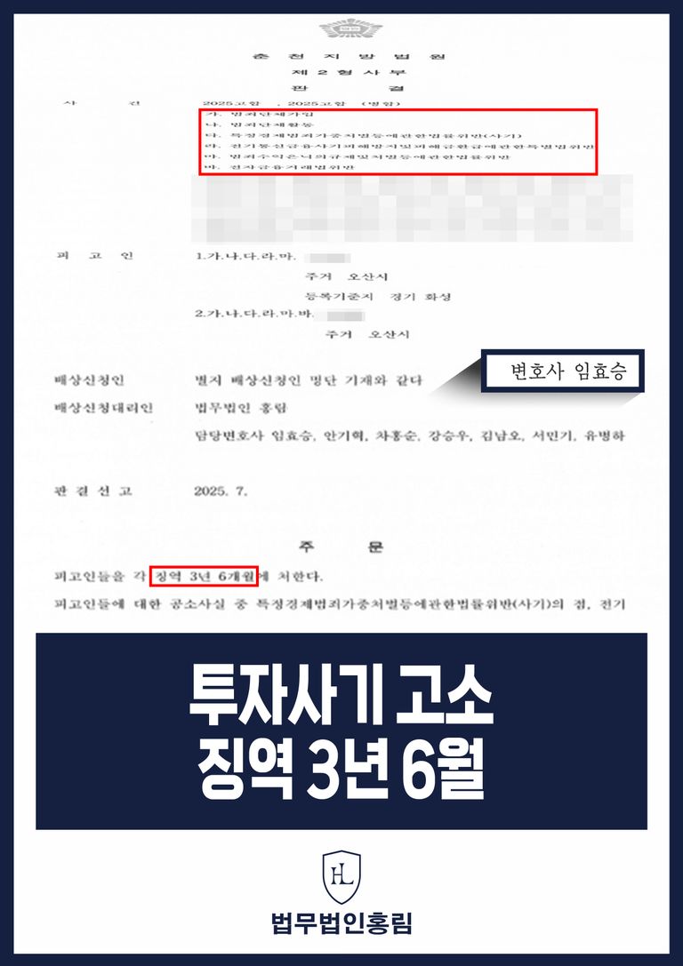 치밀하게 기획된 범행 수법과 조직적인 역할 분담으로 인해 다수의 피해자가 발생했으며, 이들은 투자금 명목으로 갈취당한 돈을 되찾기 어려운 절망적인 상황에 놓여 있었습니다. 이러한 상황에서 피해자들은 피고인들의 불법행위에 대한 응당한 처벌과 피해 회복을 위해 법률 전문가의 도움이 절실해 투자사기 고소 전문 로펌인 법무법인 홍림으로 방문하셨습니다.
