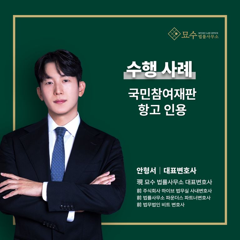 본 사건에서도 피해자가 국민참여재판을 원하지 않는다는 이유로 기각이 이루어졌으나, 안형서 변호사는 항고 과정에서 국민참여재판제도의 입법 취지와 본 사건에서 국민참여재판의 필요성, 그리고 국민참여재판으로 진행하여도 피해자 보호가 가능함을 들어 서면으로 설득력 있게 제시하여 국민참여재판 배제 이유의 불합리성에 대해 적극 소명하였습니다.