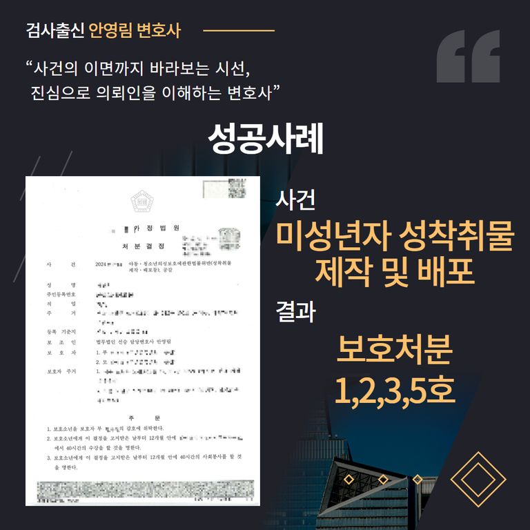 아청법 위반 성착취물 제작 → 결과 : ‘1,2,3,5호’ 처분