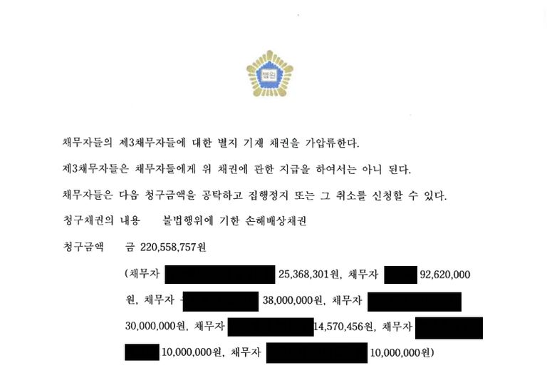채무자들은 다수의 법인 및 개인으로 원고가 주장하는 불법행위로 인해 재산상 손해를 발생시켰으며, 각 채무자별로 청구금액은 총 220,558,757원이며, 각 채무자의 명의 계좌 중 압류되지 않은 예금부터 순차적으로 압류하는 방식으로 가압류가 진행되었습니다.