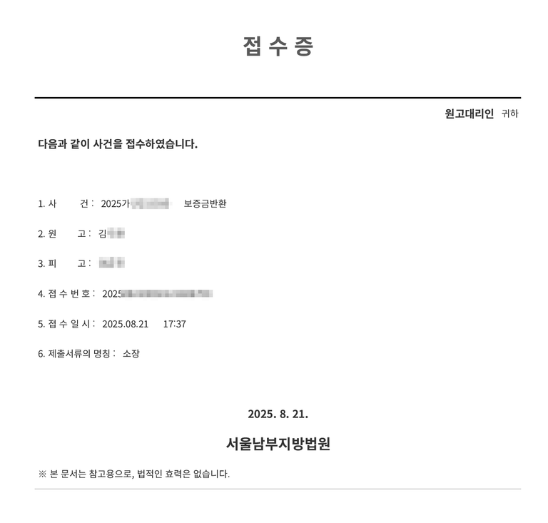 [의뢰현황] 2025년 8월 21일 김**님 보증금반환소송 사건 위임