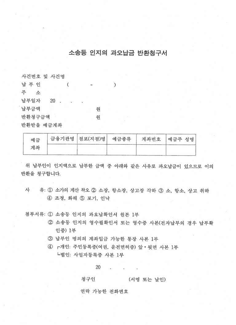 과오납 사실 확인 : 법원사무관 등에게 인지대가 과오납되었다는 사실 확인을 요청합니다.