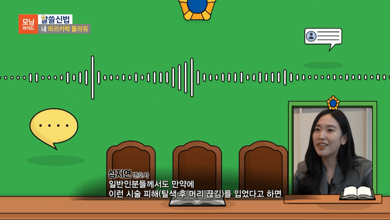 “일반인분들께서도 이런 시술 피해를 입었다고 하면 모발을 다시 이어 붙이는 복구 비용이라든가 정신적 위자료로 손해배상을 충분히 받으실 수 있습니다. 대략 1천만 원 내외 정도의 손해배상 책임이 인정되고 있습니다.”