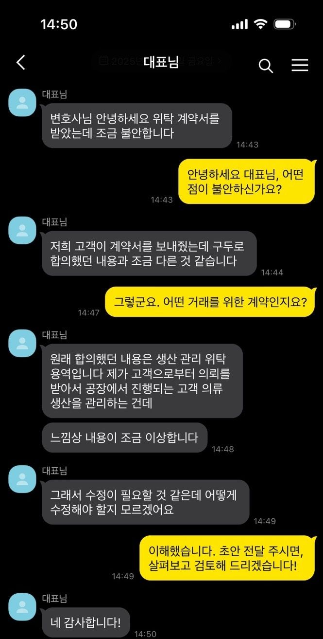 오늘은 생산 관리 업무 위탁 계약 검토 사례를 소개해 드리려고 합니다.