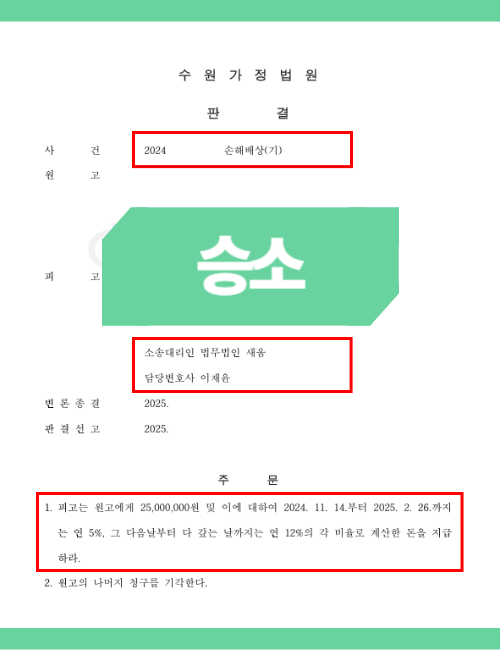 그러나 법무법인 새움은 부정행위가 발생하기 전부터 이미 혼인 관계가 실질적으로 파탄 상태였다는 점, 혼인 파탄의 책임 역시 양측 모두에게 있거나 오히려 B씨에게 더 크다는 점을 주장했습니다. 그 결과 예상보다 적은 위자료만 인정받을 수 있었습니다.