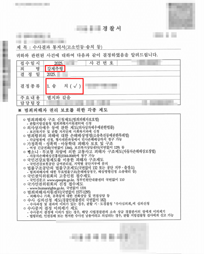 결국 사건은 검찰 송치라는 의미 있는 성과로 이어질 수 있었습니다 :)