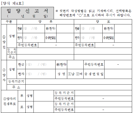 셋째, 모든 동의가 완료되면 시·구청에 입양신고를 해야 합니다. 이때 필요한 서류는 입양신고서, 가족관계증명서, 동의서 등입니다.