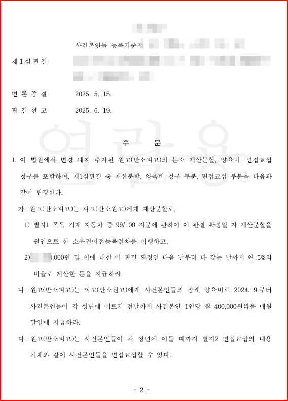 그 결과, 법원은 저의 주장을 받아들여 의뢰인(남편)을 두 자녀의 친권자 및 양육자로 지정하고, 오히려 상대방(아내)에게 매월 자녀 1인당 40만 원의 양육비를 지급하라고 판결했습니다.