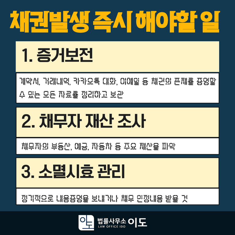 채권 발생 즉시 해야 할 일들을 단계별로 정리해 보겠습니다.