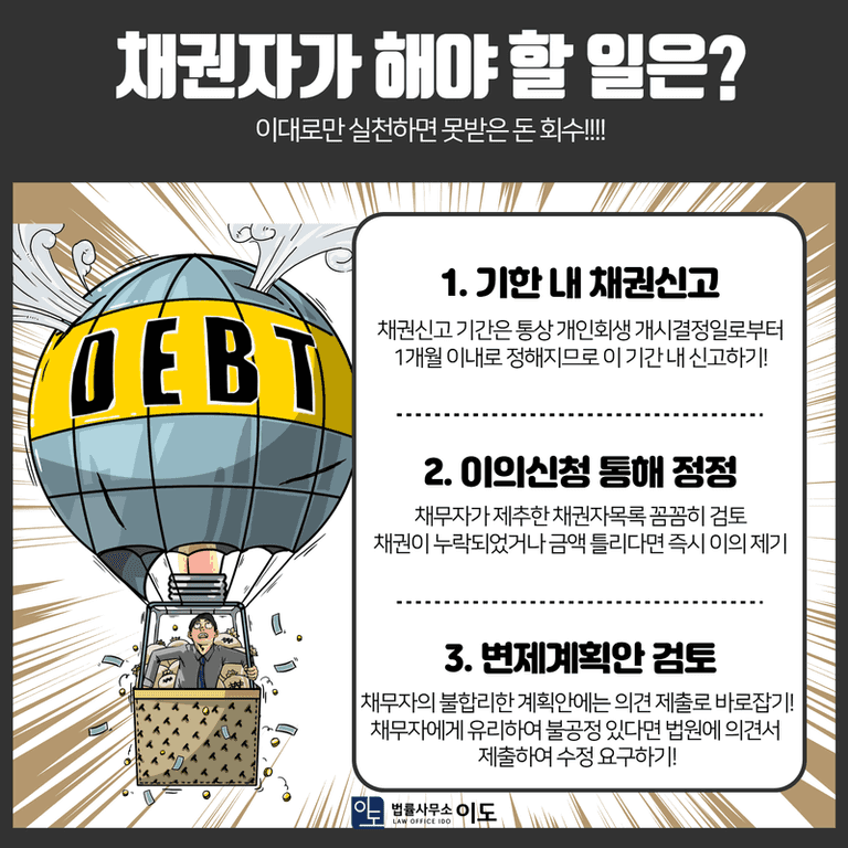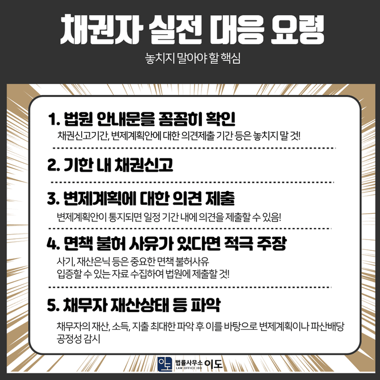 개인회생이나 파산 절차에서 채권자가 놓치지 말아야 할 핵심 대응 요령들을 정리해 보겠습니다.
