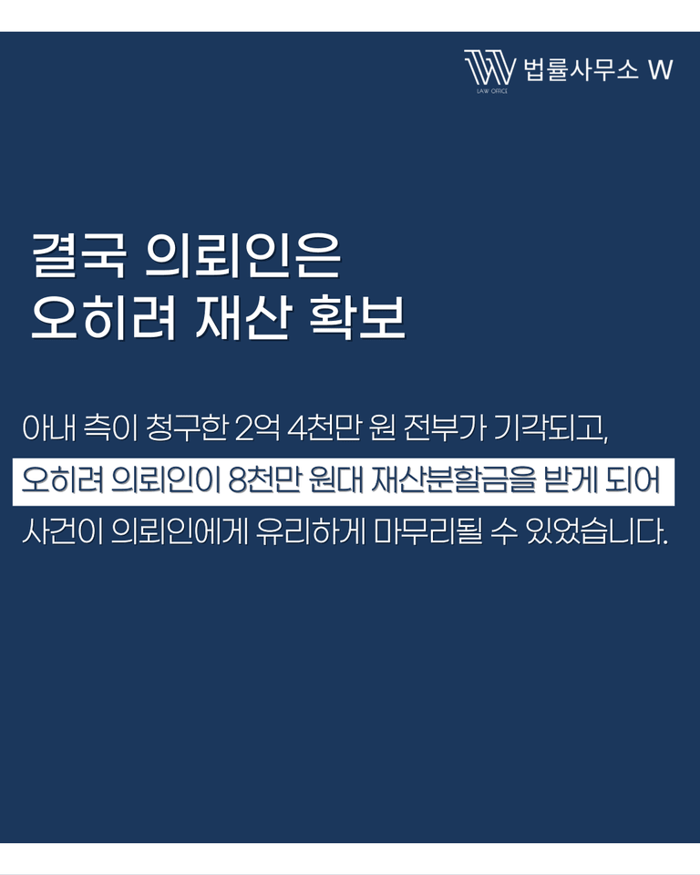 오히려 의뢰인이 8천만 원대 재산분할금을 받는 것으로 사건 마무리
