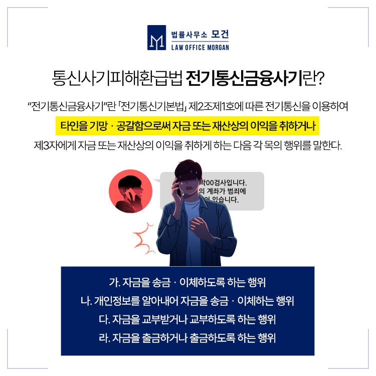 전기통신사업법은 전기통신을 이용하여 타인을 기망·공갈함으로써 자금을 편취한 자를 처벌하는 특별법으로, 기존에는 직접적으로 피해자를 속여 자금을 송금·이체하도록 하는 행위를 처벌하였으나, 개정을 거쳐 현금수거책도 포함되게 되었습니다.