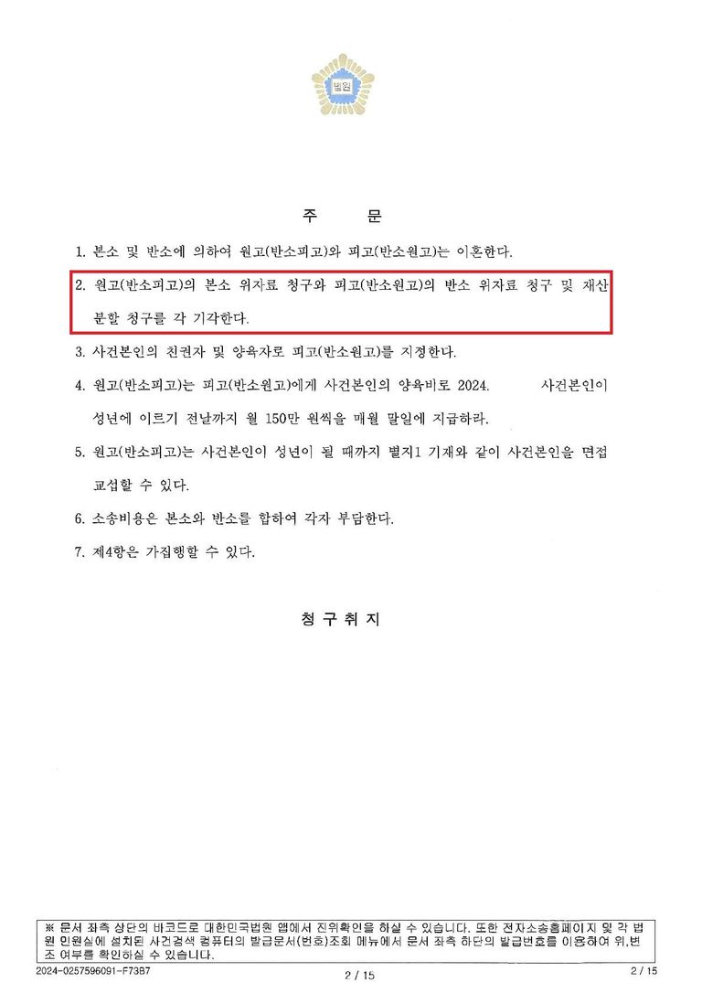 상대방의 재산분할 12억 청구 전부 방어라는 전부 승소로