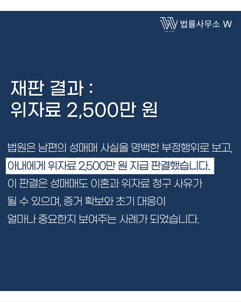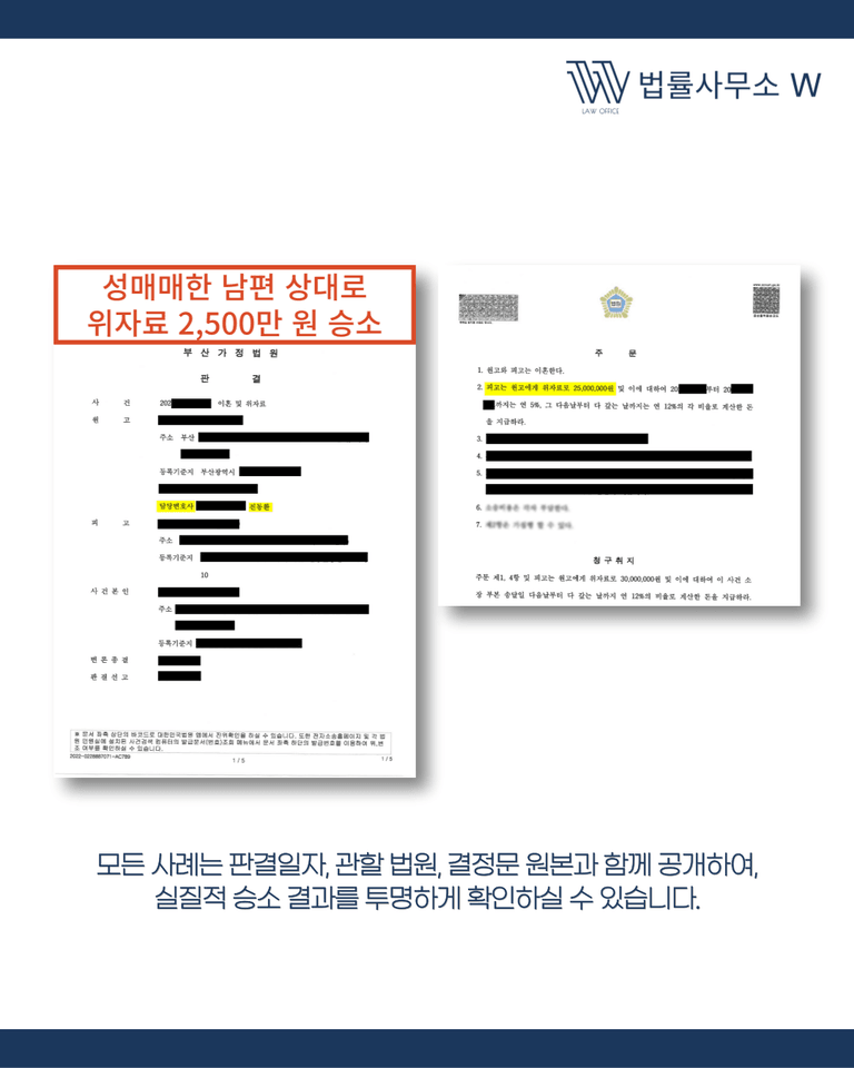 오늘은 남편이 업소 여성을 만나 성매매를 했다는 사실을 카카오톡 대화로 입증하고, 위자료 2,500만 원을 인정받은 사례를 소개해 드리겠습니다.