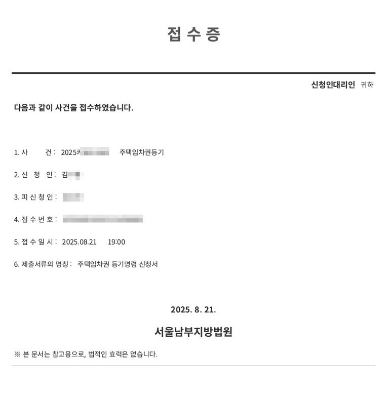 [의뢰현황] 2025년 8월 21일 김**님 주택임차권등기 사건 위임
