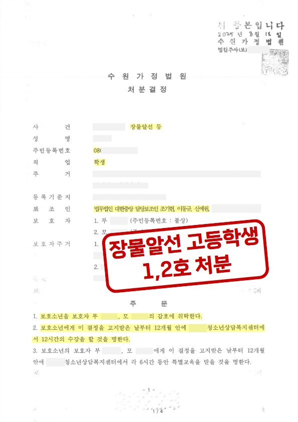 그 결과 재판부는 이동규 변호사의 주장을 모두 인정하고 가장 가벼운 처분인 1,2호 처분을 내렸습니다. 이에 A군은 고등학생의 신분에 맞게 일상으로 돌아가 학업을 이어갈 수 있었습니다.