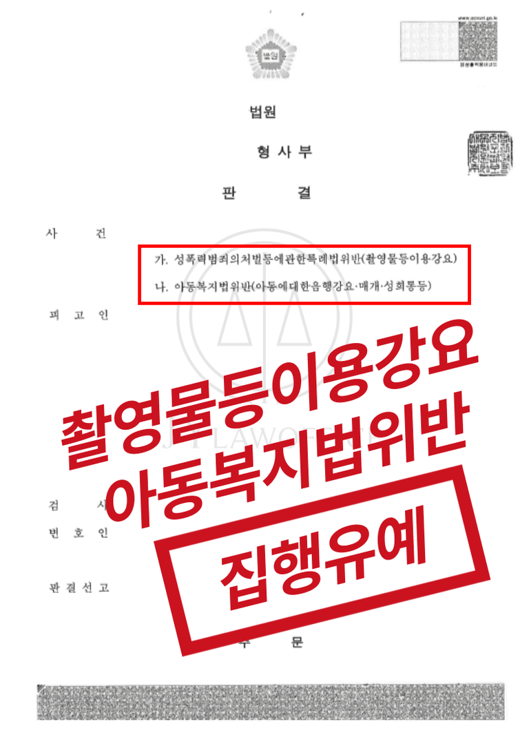 [성공사례] 촬영물등이용강요, 아동복지법위반 - 집행유예