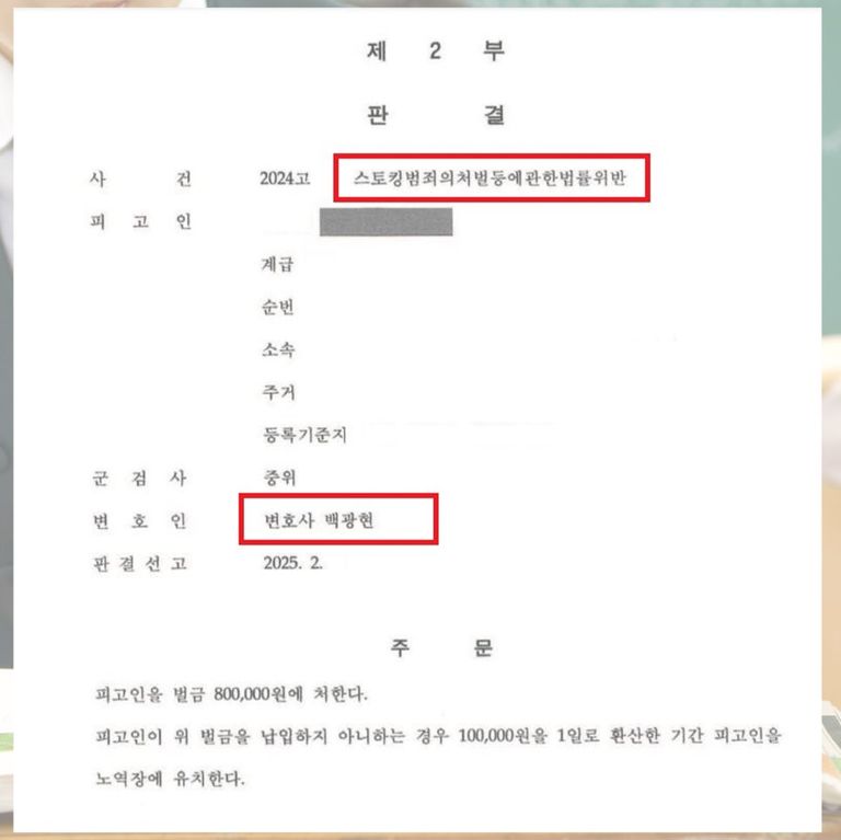 재판부는 스토킹범죄의처벌등에 관한 법률 제18조 제1항에 따라 최대 3,000만 원의 벌금형이 가능한 사안임에도, 저희 룩스가 제시한 변론과 증거를 종합적으로 검토한 결과, 피고인 A님에게 벌금 80만 원이라는 낮은 수준의 처벌을 결정했습니다.