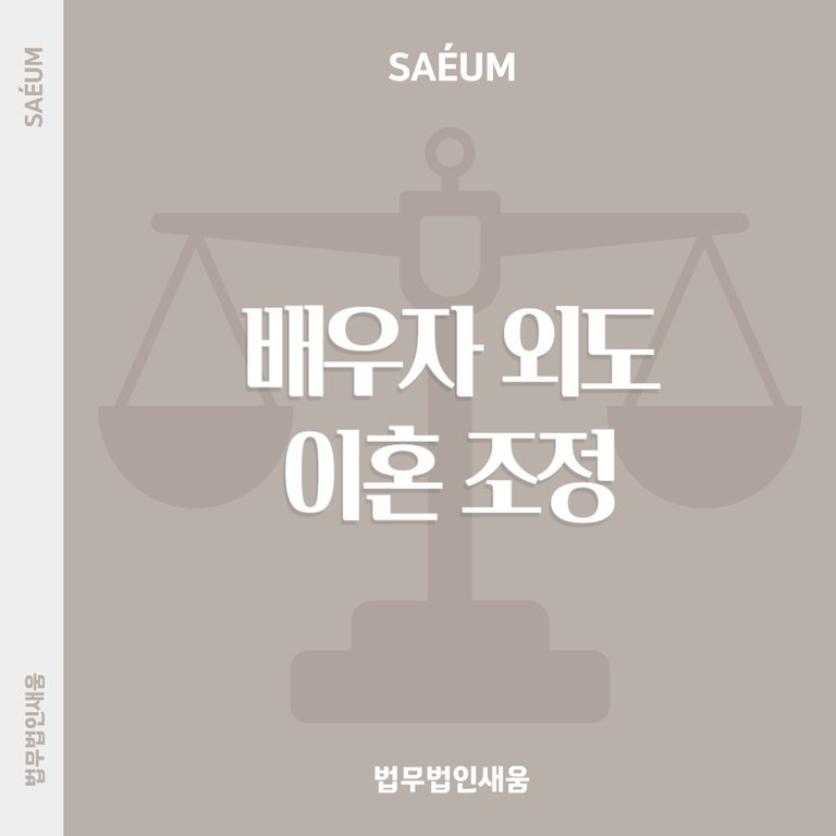 의뢰인 A씨는 유책배우자 입장에서 이혼 조정을 하게 되셨는데요. 유책 정도가 심한 상황이었으나 법무법인 새움의 도움을 받아 큰 피해를 입지 않고 배우자 외도 이혼을 하실 수 있었습니다.