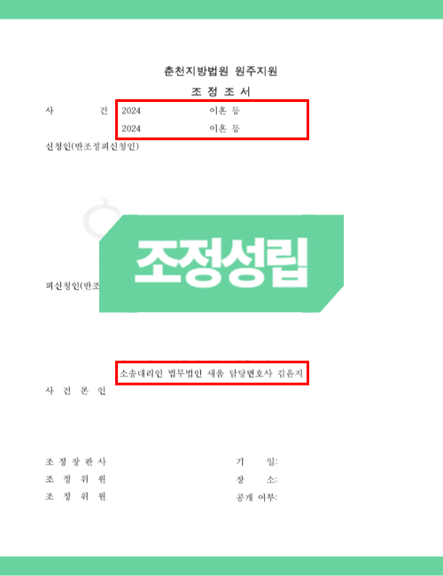 우선 우리나라는 소송 전 조정을 거치게끔 하고 있기에 조정신청을 하지 않아도 가정법원의 권한으로 조정에 회부되기도 하지만, 조정을 거칠 경우 비슷한 혹은 조금 더 유리한 결과를 이끌어낼 가능성이 있으면서도 더 빠르게 마무리될 수 있어 조정을 선호하는 분들이 많습니다.