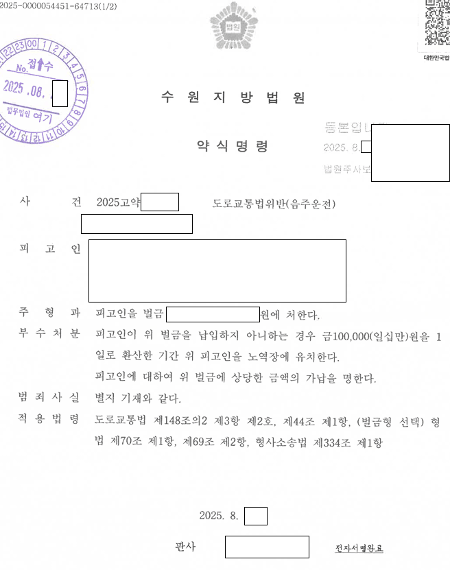 오늘은 음주운전 전과 3회째인 분이 정식재판 청구없이 약식명령 별금형으로 종결된 사건을 포스팅합니다.