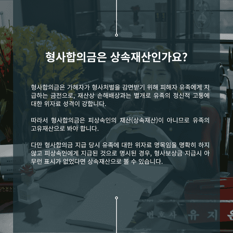 이번 시간에는 형사합의금도 상속재산에 해당하는지 알아보도록 하겠습니다.