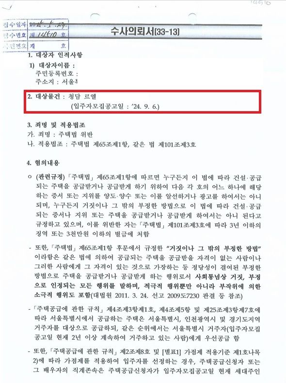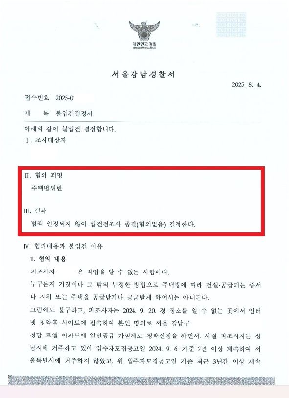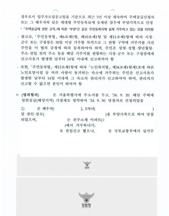 그러던 중 갑자기 국토부에서 저를 주택법위반으로 의심된다며 경찰에 수사의뢰하였다는 연락을 경찰을 통해 받았습니다.