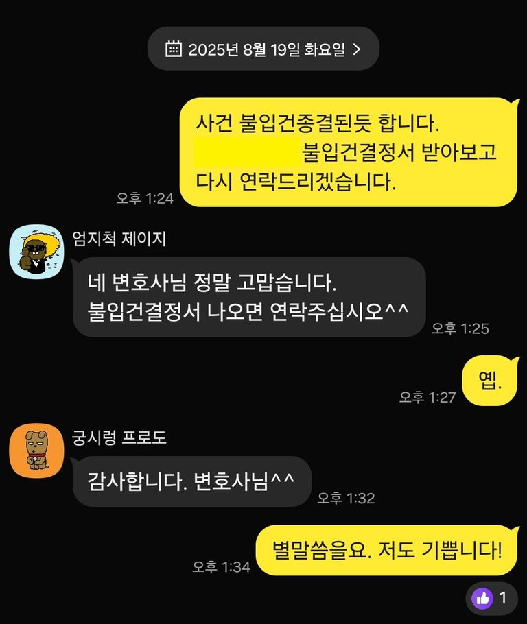 이 사건은 캡틴법률사무소의 적극적인 조력을 통해 '불입건(혐의없음)'종결되셨습니다.