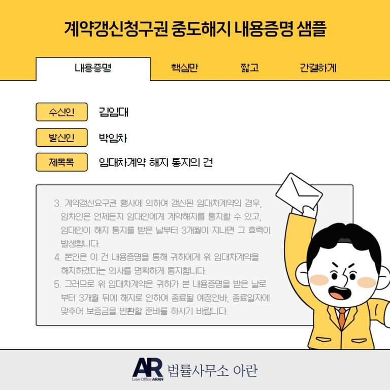 변호사가 직접 쓴 계약갱신청구권 중도해지 내용증명
